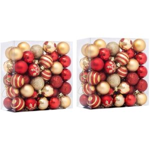 Christmas ball ornament collection. There are 9 different colors of decorative balls allowing you to build your collection quickly and decorate with more possibilities. Small Christmas balls are perfect for decorating Christmas table decorations, filling small spaces and the tips of standard balls. The colored balls are also perfect for use in all your Christmas craft projects and gift wrapping. Shatterproof Christmas tree balls combine the beauty and durability of real glass with the unbreakable practicality of plastic. Ideal for families with children and pets. You avoid worrying about hurting them and glass shards everywhere. Christmas decoration balls are made of high-quality thicker plastic and more sophisticated processing. They are dazzling even if you look closely. 100 Christmas balls. Christmas ball hooks included for easy hanging. Dimensions: 1.57 inch (40 mm) in diameter. Color: Red + Gold Material: Plastic Package Contents: 2 set x Christmas tree decoration Only the above