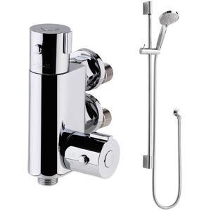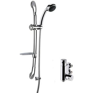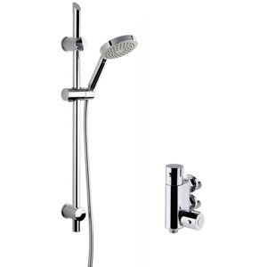 Features and Benefits: Includes shower valve and shower kit Provides everything you need for a 1 outlet showering experience Single outlet systems are the most popular solution used throughout homes The perfect solution for quick, easy installation of your new shower system Vertical design for when space is at a premium Thermostatically controlled Slimline design Suitable for water systems between 0.1-4 bar pressure Multi-function round handset Supplied with soap dish Manufactured from high quality brass & ABS with a luxury chrome finish During installation extra care must be taken to avoid damaging the fittings Guarantee : 5 Year (12 months on serviceable moving parts from the date of purchase), please see manufacturer guarantee policy for more information Shower Type Thermostatic Shower Valve Position Bar Shower Valve Outlets 1 Shower Includes Shower Kit, Shower Valve Shower Valve Controls 2 Shower Kit Height 595mm Minimum Pressure 0.2 Bar Inlet Connection Size 15mm Compression