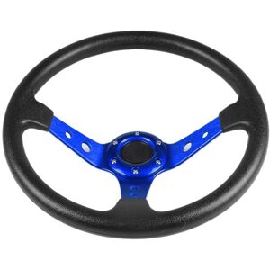 With a diameter of 350mm, the reasonable size allows the driver to make the same turns more easily. Universal, suitable for most racing hub adapter cars. The frame is made of high-quality aluminum, rust-proof and . Wrapped with PU to improve grip, handling and control, ensuring better performance. A rich look, plus embellishments to decorate your car, greatly enhances your racing style. Specification: TYPE: Car Racing Drifting Steering Wheel Fitment: Suitable For G29 G92 size: Outer diameter about 35cm Material: PU+aluminum colour: C-Black+Blue Package Contents: 1 x steering wheel 2 x cable Only the above package content, other products are not included. Note: Light reflection and different displays may cause the color of the item in the picture a little different from the real thing. The measurement allowed error is +/- 1-3cm.