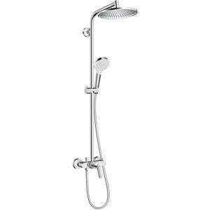 Hansgrohe Crometta S Showerpipe 240 1jet with manual shower mixer - colour Chrome Enjoy a versatile showering experience with the Crometta S shower system and water fun in two ways: the 240 mm round overhead shower with the full Rain spray mode and a water flow of 15 l/min is ideal for relaxing in the XXL rain shower, and is perfect for rinsing out your hair. The angle of the overhead shower is adjustable at the ball joint. Use the diverter on the faucet to conveniently switch to the hand shower’s rain spray (max. 14 l/min) or the revitalizing Intense Rain spray (max. 11.5 l/min). Simply turn the spray disc. The Crometta Vario hand shower can be conveniently adjusted to your desired height on the shower valve. You can set the water volume and temperature as usual on the single-lever shower faucet. The fresh look of Crometta will delight fans of timeless modern bathrooms. Enjoy a wonderful showering experience at a great price. From the hand shower to the shower system: this range is