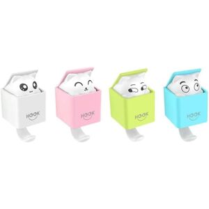 Creative Design - The cute cat expression hooks, When you hang something on it, the kitten will stick out its head. When you don't hang anything, the kitten will hide in the box. Interesting elements in your home. Easy to install - No drilling, no punching and no damage to the wall, just peel off the adhesive tape and stick it on a smooth and clean/dry wall. Please wait 24 hours before hanging anything after installation. With a maximum load of 2 kg. Multifunctional hooks - Ideal for hanging caps, coats, jackets, scarves, backpacks, keys in the bathroom, bedroom or children's room. Helps organize your home stay. High-quality materials - The hooks are made of ABS, an environmentally friendly, durable and waterproof material. The appearance is beautiful and practical. Set of 4 - There are four cute cat hooks with different expressions in 4 different colors (white/pink/green/blue). They provide a fun and modern way to store your small items and decorate the wall.