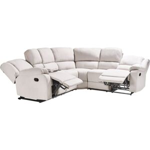 5-Seater Reclining Sofa. This thickly padded, and deliciously curved sofa is the perfect place for indulgence after a long day. The sprung seats and high backrest offer the most comfortable sitting position. The two corner seats are fitted with manual adjustment that allows you to lower the backrest and raise the footrest, reclining to a position perfect for relaxation. The centre armrest does not only add extra comfort, but it holds space for two cups and a small storage so that you can keep snacks or glasses nearby. Details: Product Type: Corner Sofa Style: Modern General Color: Grey Shade: Dark Grey Material Type: Fabric Main Material: Fabric Additional Material: Plywood Filling Material: Foam Material Composition: 100% Polyester Shape: L-Shaped Adjustable Parts: Backrest Adjustment Type: Manual Arm Style: Pillow Top Orientation: Left Hand Pattern: Solid Seat Construction: Sinuous Springs Seat Foam Density: 24 kg/m3 Seats Up To: 5 People Dimensions: Armrests Height: 65 cm Depth: