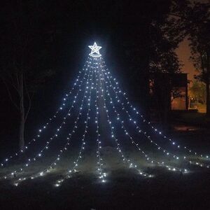Christmas Tree Decoration: Total of 350 LEDs. There are 9*3.5m drooping lines, each with 35 light beads. Diameter 32cm Star. 5m power cord. Ideal for enhancing your homes, gardens, patios, Christmas tree. IP55 Waterproof - The outdoor Christmas string lights are waterproof and you can hang the string lights outdoors. (Please keep the power adapter away from water.) Safe to Use: The output voltage of the string lights is 31V, safe and energy-saving. The power of the adapter is only 20W, with CE certification. Technical Specifications Waterproof for outdoor use These string lights are durable enough for all weather conditions and are perfect for outdoor use. Perfect for Christmas trees, parties, weddings, homes, dorms, windows, bathrooms, festivals, holidays, etc. Hang it on a tree or roof to decorate your yard or garden. Bring a pleasant atmosphere to your Christmas party. Ideal gift choices for family and friends. Package included: 1 x 350 LED String Lights