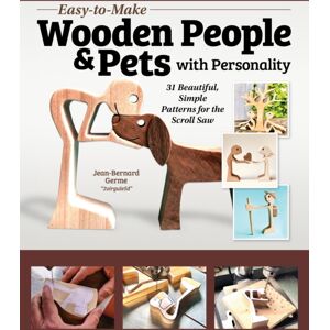 Easy-to-Make Wooden People & Pets with Personality features 31 adorable high-quality wood projects with full-size patterns such as relaxing on a lounge chair, a couple holding hands, a family with kids, a child with a pet parrot, a person running/hiking/doing yoga, and so much more!High-quality patterns are a scroll-sawyer's bread and butter, and this book is very pattern heavy while still including introductory material for beginners.Front matter section is comprehensive for beginners including wood selection, materials and tools, using the patterns and applying a finish.The projects are free standing and can be made with scrap wood in a short amount of time.Author, Jean-Bernard Germe, has sold over 11,000 pieces and has 5300 admirers on his Etsy site and has an average rating of 5 stars.He is highly respected as the originator of his aesthetic.