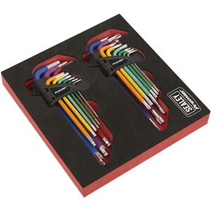 Sealey Premier Long Ball-End Hex Key Set 9pc Features: Manufactured from hardened and heat treated Chrome Vanadium steel with a fully polished finish. Keys range in length from 65 to 175mm. Contents: 1.5, 2, 2.5, 3, 4, 5, 6, 8, 10mm. Colour-coded anti-slip coating for comfort, control and fast identification. Supplied in easy-access case for safe storage and quick key selection. Technical Details: • Manufactured from hardened and heat treated Chrome Vanadium steel with a fully polished finish. • Keys range in length from 65 to 175mm. • Contents: 1.5, 2, 2.5, 3, 4, 5, 6, 8, 10mm. • Colour-coded anti-slip coating for comfort, control and fast identification. • Supplied in easy-access case for safe storage and quick key selection. • Lifetime guarantee*. • Model No. AK7190 • Model No. AK7190 Additional Information: • One of a comprehensive range of Premier Hand Tools, suitable for daily professional use. • Manufactured from hardened and heat treated Chrome Vanadium steel with a fully