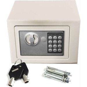 Specifications: Material: Solid Steel Color: White Dimension: 170*230*170 mm? Capacity: 4.6L Lock Type: Digital/Keys (Open the box by entering digital PIN code or using override key); PIN Setting Rule: Security code should be from 3-8 digits using any number from 0-9; Time out period: after 3 incorrect combination attempts; Battery Required: 4 x AA-Size 1.5V (battery not included in the package); Body Thickness: 2mm solid steel; Door Thickness: 4mm solid steel for More Security; Pre-drilled holes behind the safe box; Comes with 125px bolts for anchoring; Mounting to the floor, wall or cabinet; Fixture Type: Surface Mounted; With a tamper-proof hinge inside, keeping your valuables in secure; Includes a Carpet padding in the bottom of the box; Occasion: HOME OFFICE HOTEL Package includes: 1 x Safe Box 1 x Velvet Mat in the bottom of the box 2 x Keys 2 x Anchor Bolts for Mounting 1 x Instruction Manual