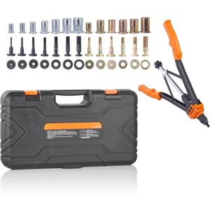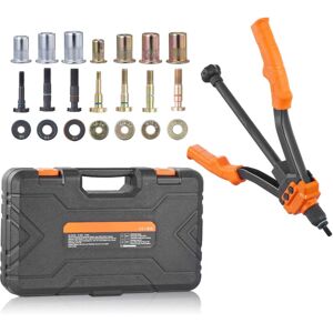 Mophorn Rivet Nut Tool Enhance Your Riveting Experience The Mophorn rivet nut tool is designed with extended 16-inch handles to provide superior leverage, ensuring smooth and effortless riveting. Whether for DIY enthusiasts or professional tasks, this tool adapts seamlessly to a wide range of materials and surfaces. Discover the reliability and versatility of this durable rivet nut tool kit, making every riveting task easier and more efficient. Powerful Lever-Driven Riveting Built for Long-Lasting Performance Comes with 13 Mandrels and Rivet Nuts User-Friendly Design Key Features Durable Construction for Long-Term Use: Built with high-strength alloy rivet setting rods and carbon steel handles, this professional-grade rivnut tool kit is designed to resist corrosion and deformation. The ergonomic rubber handle ensures a non-slip, comfortable grip, providing stable support for both daily work and hobby projects. Quick and Easy De-Riveting: This 16-inch rivet nut tool features a