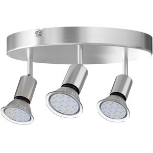Smart looking ceiling light! This LED ceiling light has 300 Lumens per light spot. The lights come with flexible light spots, so that you can light up the room as required. They are versatile and easy to install, as well as ideally suitable for the indoor area. Light bulbs are included. Product advantages: 360° rotatable and 90° swivelling spots Even light spread Easy installation Technical data: Wattage per spot: 4.5 Watt Lumens per spot: 300 Lumens Socket: GU10 LED Material: Metal Colour: Satin nickel Dimensions: 1 flame Item weight: 160g Dimensions (WxH): 70x105mm / 2.8x4.1 in Dimensions : 2 flame Item weight: 280g Dimensions (LxWxH): 250x65x120mm / 9.8x2.6x4.7 Dimensions : 3 flame Item weight: 390g Dimensions (LxWxH): 410x80x125mm / 16x3x4.9 in Dimensions : 4 flame Item weight: 490g Dimensions (LxWxH): 500x65x120mm / 19.7x2.6x4.7 in Dimensions : 3 flame round Item weight: 420g Dimensions (WxH): 190x105mm Dimensions : 3 flame round Item weight: 630g Dimensions (WxH): 300x125mm /