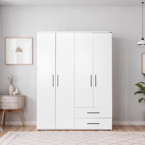 Upgrade your bedroom storage with the Adore Matt White 4 Door 2 Drawer Combi Wardrobe-a versatile, spacious, and stylish solution that blends function with modern design. This wardrobe is ideal for households seeking both hanging and shelving storage in a single, space-saving unit. Crafted from durable materials and finished in a crisp matt white, this wardrobe brings a bright, contemporary look to any room. The left-hand double doors open to reveal a high shelf, a low shelf, and a robust aluminium hanging rail, offering a practical setup for longer garments, folded items, and accessories. The right-hand double doors house four shelves, with three adjustable compartments to suit a variety of storage needs-ideal for keeping shoes, handbags, or folded clothes neatly arranged. At the base of the wardrobe, you'll find two deep drawers, perfect for organising bulkier items such as knitwear, bedding, or seasonal pieces. Designed for ease of use, the wardrobe is delivered flat packed with