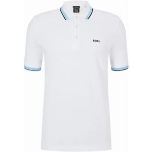 This BOSS Paddy Piqué Polo Shirt in Silver Grey features a sophisticated regular fit design. Crafted from premium 100% cotton piqué fabric, it showcases a distinguished flat-knit collar with contrast tipped sporty stripes that extend to the sleeve cuffs. The three-button placket offers versatile styling, while the embroidered BOSS logo provides authentic brand identification. Regular fit Three button placket Flat-knit collar Short sleeves Sporty stripes Embroidered Boss logo 100% Cotton  Boss Green