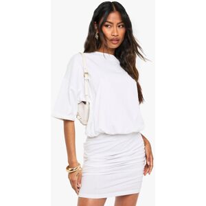 Crafted from soft cotton fabric for all-day comfort Distinctive ruched detailing creates a flattering silhouette Relaxed T-shirt upper with stylish crew neckline Versatile mini length perfect for day-to-night transitions Elegant three-quarter length sleeves with loose fit This Boohoo ruched T-shirt minidress combines casual comfort with figure-enhancing style. The relaxed upper creates a contemporary contrast against the form-fitting ruched skirt, making it a versatile addition to your wardrobe. Style with minimal gold jewellery and strappy sandals for daytime socialising, or transform your look with statement earrings and a compact shoulder bag for impromptu evening plans. The cotton fabric ensures breathability whilst maintaining shape throughout wear. Perfect for family gatherings or casual brunches with friends, this dress offers effortless style that can be customised to suit your personal aesthetic. Layer with an oversized denim jacket and trainers for a more relaxed approach to everyday dressing.