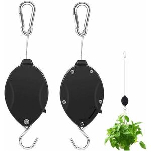 ADJUSTABLE PLANT PULLEY: The plant hanger brackets feature a durable internal sling. Made of high quality ABS plastic shell, metal rope and iron hooks. Freely adjust the height of the suspension. This makes watering and feeding much easier. STRONG AND DURABLE: Metal hook and ropes are strong enough to hold a 55lb (max) plant or flower basket, don't worry about solidity. Can be stretched up to 5 feet (the longest). The retractable plant hanger allows plants to hang in the best visual effects. Easy to use: Make sure the hook is in the direction (the rope is straight) before use so that the hanger can work normally . Press the switch and pull it to the position where you want to stay, when you don't use it, you can easily store it. Small and practical, while saving shelf space. Suitable for: decorative hanging plant hanging pulley, flower basket, pots, birdcage, can be used in the garden, eaves, house, porch, etc. Manage your flowers and plants quickly and easily. Improved quality!