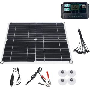 1.High conversion efficiency, good output efficiency, low light efficiency, light weight, easy to carry and strong applicability. 2.Scratch resistant, non foaming, easy to clean.It is semi flexible and can be bent properly to use a range of applications. 3.Light weight, easy to carry. High conversion rate and high yield. High stability and good durability.It has a single crystal chip, which can be used in automobiles, families, ships, motorcycles, etc. Conversion rate: 23-24% Voltage: 5V Maximum power supply voltage: 6V Short circuit current: 2A Junction box: IP67 RETED Working temperature: -40℃+85℃ colour: black Material: Monocrystalline silicon Size: 280x280x2mm Package Contents: 1 x Solar panel 1 x 40A controller 1 x 1 drag 10 charging cable 1 pair x alligator clips 1 x Car charger 4 x suction cup Only the above package content, other products are not included. Note: Light reflection and different displays may cause the color of the item in the picture a little different from the