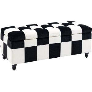 A fun colour block design, paired with handy discreet storage: say hello to the cool way to keep your home tidy this season and beyond. This 47 x 105 cm storage ottoman is great for bedrooms and living spaces - it's got enough room for keeping small furnishings stored. The hinged lid is easy to open and close, with a padded top which can be used as a seat. Complete with wooden legs for support. Versatile: use as a general storage of home furnishings, office papers, as a toy box, blanket box, or even footstool. Colour block velvet upholstery: soft and striking. Handy inner 40 x 105 cm storage. Padded top acts as a temporary seat. Wooden legs for support. Adjustable feet for balance. Maximum load 150kg, assembly required. Material: Polyester, rubberwood, multilayer board, sponge. Overall dimension: 114W x 47D x 47H cm - Hidden storage size: 105W x 40D x 28H cm. Lid thickness: 8.5 cm. Leg height: 9 cm. Weight capacity: 150kg. Ebern Designs Upholstery Colour: Black/White