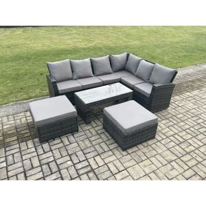 This PE rattan outdoor corner sofa set is a great addition to patio or garden, made of high quality PE rattan and durable galvanized steel construction for sturdiness and long lasting.and this garden furniture set can be put Outdoor all year round. Set Dimensions: • 1 x Square Coffee table: 65L x 65W x 34H cm • 2 x Big footstool :65L x 65W x 34H cm • 1 x 3 seater sofa with two arm : 170L x 69D x 79H cm • 1 x 3 seater sofa with single arm: 160L x 69D x 79H cm Dark grey mixed rattan with dark grey fabric .Color may some difference due to light or monitor .we are unable to return the item due to color problem . Items Comes Flat Packed And Easy Assemble,Sturdy Galvanized Steel Tube Metal Frames With Powder Coating To Prevent The Rust Flat PE Rattan Completely Made By Hand, 5mm Thickness transparent Tempered Glass With Sucker On Surface To Prevent Sliding Low Maintenance ,Removable Cushion Cover And Easy Move To Different Place.Pls Keep the Cushion Indoor Or put on With Rain Cover When Not