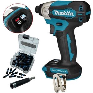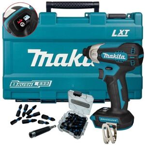 The Makita DTD157 LXT Impact Driver has a powerful brushless motor and electronic 2-speed impact power selection. Variable speed is controlled via a trigger. It also has an assist mode for controlled screwdriving. Fitted with an ergonomically designed high comfort grip. There is also an electric brake and an LED job light. The DTD157 cordless impact driver features high operation efficiency with a 140 Nm max torque and brushless motor. It's ¼” hex chuck accepts M5 – M12 standard bolts and M4 – M8 machine screws, making it ideal for repetitive screwdriving. This set includes x25 25mm PZ2 Black Impact drill bits and comes complete with drill bit holder Features eXtreme Protection Technology (XPT) offers maximum protection against dust, debris and liquids for optimal performance in extreme conditions Compact housing sizes around the motor allow for easy screwdriving in tight corners 2-Stage power selection for controlled fastening speed A-Mode stabilises screw whilst fastening into wood