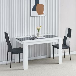 Dining Table and Chairs Set --- Technical Information Table Size 80x120x74.5 cm / 31.5x47.2x29.3 inch in DxWxH Distance between table legs 59 cm/23.2 in and 98 cm/38.6 inch Seat Size (W) 51 x (D) 40 cm / 20.08 x 15.75 inch Seat Height 45 cm / 17.72 inch Backrest Height 49 cm / 19.3 inch Weight capacity of chairs 200 lbs. Dining Table 120x80 cm rectangular white black dining table. Easy to clean The tabletop can be easily cleaned. Separate Parcels The items will be sent separately in 2-3 parcels. Assembly Required The item comes in flat-pack and requires self-assembly. Choose Your Dining Chairs! Flannel Linen Faux Leather Assembly Note: While assembling, please do not tighten the screws totally at first in order to avoid damage to other parts/boards/plates. All the all part are in position, then fully tighten all the screws. Attention Please! Mainland England, Scotland and Wales deliveries only. We do NOT deliver to Northern Ireland. We are committed to excellent products and satisfied