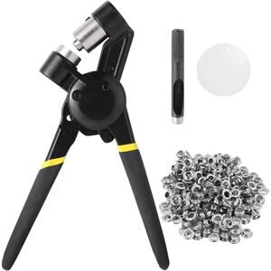 [High Quality] The handle material is made of special plastic, low friction, non-slip and easy to grip. [Application] It is suitable for shoes, clothes, shoelaces, DIY projects, canvas, tarpaulins, tents, awnings and leather crafts and adds embellishments to your crafts, etc. [EASY TO USE BY HAND] This eyelet tool set is lightweight, flexible for all angles of use, suitable for indoor and outdoor construction, repair and decoration work, etc. [Premium Eyelet Kit] The eyelet kit includes a 16 cm long and steel hole punch, it also includes 100 eyelets with an outer diameter of 17.7 mm and an inner diameter of 10.5 mm. [Ergonomic Grip] The non-slip handles will not tire your hands and can be pressed easily.