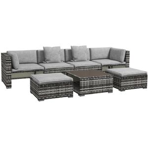 Feature: PE wicker patio furniture set: 2 armless chairs, 2 side chairs, 2 stools and 1 matching coffee table Stools can be organized under the chair Two lift-up shelves in the armrest and coffee table with bottom shelf. Glass top table is stylish Steel frames with a powder coat for strength and outdoor endurance Handwoven PE rattan has a classic wicker look and is water-safe Yarn-dyed fabric resists water fades and is flame retardant Thick padding offers great comfort Cushion covers with zippers for easy removal and cleaning. Stool cushions can be fixed by ties Adjustable footpads for uneven surfaces Suitable for gardens, balconies and patios Assembly required Specification: Colour: Mixed Grey Material: Steel, PE Rattan, Yarn-dyed Fabric (Polyester) Side Chair Dimension: 75W x 75D x 63Hcm Armless Chair Dimension: 65W x 75D x 63Hcm Footstool Dimension: 60W x 60D x 28Hcm Table Dimension: 65W x 65D x 33Hcm Seat Size: 65W x 65Dcm Seat Height (without Cushion): 32cm Cushion Thickness: 8cm Weight Capacity: Chair and Footstool: 120kg, Table: 50kg Item Label: 860-318V70LGJust so you know: this item ships and arrives in separate boxes. Delivery times may vary with each box. Box quantity: 3 2 x Armless Chair 2 x Side Chair 2 x Footstool 1 x Table 4 x Seat Cushion 4 x Back Cushion 2 x Armrest Pillow 1 x Manual Just so you know: this item ships and arrives in separate boxes. Delivery times may vary with each box. Box quantity: 3