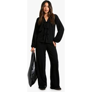 Ribbed texture for added comfort and style Long-sleeved crop top with unique lace-up detail Wide-leg trousers for a relaxed, on-trend silhouette Versatile two-piece set for effortless coordination Stretchy fabric blend for all-day comfort Embrace laid-back chic with this ribbed co-ord set from Boohoo. The long-sleeved crop top features an eye-catching lace-up detail at the front, adding a touch of intrigue to your casual ensemble. Paired with wide-leg trousers, this set offers a contemporary silhouette that's perfect for various casual occasions. Style it with trainers and a tote bag for a day out shopping, or dress it up with heeled boots and statement jewellery for an evening with friends. The stretchy fabric ensures comfort throughout the day, while the coordinated look allows for effortless styling. This versatile set is ideal for family gatherings, brunch dates, or simply lounging at home in style. For a sporty twist, layer the top over a sports bra and pair the trousers with chunky trainers - a look that epitomises the Boohoo girl's fun and fashion-forward approach to casual wear.