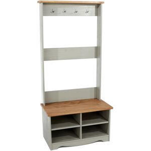 As practical as it is rich in character, this hall bench is made from responsibly sourced pine and finished in a grey washed wax and contrasting antique wax. With four hanging rails and four shoe shelves, it also offers plenty of storage. It's compact design is perfect for where space is a premium and it brings a focal point to any entrance space within the home. Easy to build and easy to clean. Lark Manor