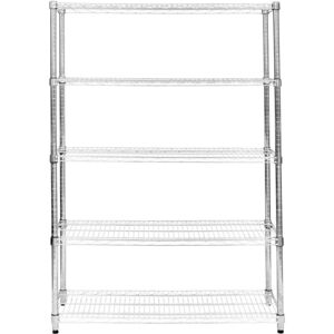 Add much needed extra storage space with this heavy duty 5 tier wire racking unit, measuring 45cm x 120cm x 180cm. This versatile and durable shelving unit is the perfect addition to any home, office, or garage. With its sleek chrome-plated carbon steel construction, it not only offers exceptional strength but also adds a touch of modern elegance to any environment. Featuring 5 spacious tiers, this unit provides ample storage space for your belongings. Each shelf boasts a remarkable weight capacity of 200kg, allowing you to store heavy items with ease. Whether you need to organise clothing, kitchen supplies, tools, or office equipment, this shelving unit is up to the job. Easily adapt the racking to suit your specific needs. Benefitting from adjustable shelves at 25mm increments, you can customise the shelf height to accommodate items of various sizes. From tall bottles to bulky equipment, this unit offers flexibility in organising your belongings. What’s more, the unit features