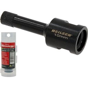 Neilsen Vacuum Brazed Diamond Hole Saw Premium professional quality diamond hole saw are designed for intense coring through Porcelain, Granite, Marble and all hard tile . Ideal for all professional tilers, plumbers, electrician, mason trades and DIY enthusiasts. High Diamond concentration for increased lifespan M14 thread for use on angle grinders Slotted barrel for easy slug ejection Application:Porcelain/Ceramic/Granite/Marble/Stoneware/Quarry tiles/Slate/Terracotta/Terrazzo 35mm drilling depth