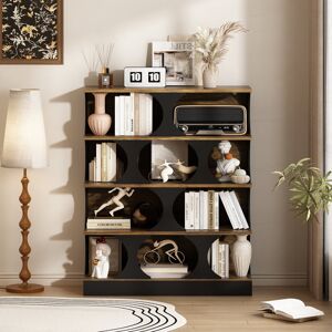 MATERIAL: The bookcase is made of high-quality MDF wood and a sturdy metal frame. This combination ensures excellent stability and a long service life - ideal for everyday use. CONSTRUCTION: The open shelving wall allows for flexible design - whether as a classic bookshelf, for displaying art objects or as a stylish room divider. With 4 spacious shelves and an innovative design with round recesses, it offers plenty of space for your books and decorative objects. VERSATILE: The round cut-outs and the combination of wood-based material and black metal give the shelf a modern vintage style that blends harmoniously into various interior styles. Whether in the living room, bedroom, office or hallway - this standing shelf is a real eye-catcher and ensures stylish organisation everywhere. EASY TO ASSEMBLE: This bookcase is supplied with assembly instructions and all components. Each part is labelled with letters or numbers and the assembly steps are marked in the assembly instructions with illustrations and text so that you can easily install it. DELIVERY: This stand shelf will be divided into 2 packages to send to you, please check carefully when you receive the product. Latitude Run