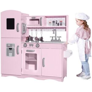 " Product Features: * Large size wooden kitchen role play set with free utensil toy set; * Fully equipped with microwave oven, fridge, freezer, stove, cupboard, towel rail; * Doors do open and close, appliance windows are see-through; * Spacious shelves for more storage space; * Tap and knobs do turn and the knobs make clicking noise; * Chalk Board for writing or painting (chalk pen not included); * Detachable cordless Phone add extra fun; * Removable kitchen sink for easy cleaning; * Made from MDF and BPA Free plastic and paint with non-toxic lacquers, EN71 Approved; * Great imaginative games and role play for kids ages 3 and up. Feeds imaginations and makes kids more creative; * Flat packed with clear instructions for easy installation; Product Specification: * Colour: Pink; * Material: MDF E1 & Plastic Accessories & Stainless Steel Utensil; * Suitable Age: 3 years and up; * Overall Size: 93(L) x 30(D) x 86(H)CM; * Carton Size: 88 x 35.5 x 16CM; * Weight: - N.W.: 15.2KGS; - G.W.: