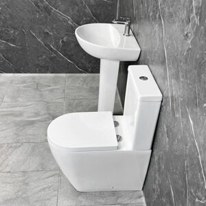 Tornado Flush Bathroom Suite Toilet with Brass Flush Button & Hinges Closed Back Round 1 tap hole basin & full pedestal With Tamara Tornado flush toilet Back to wall style toilet (closed back, hides soil pipe from view) High quality sanitaryware Close coupled toilet Modern styling Including high quality soft close seat With ‘new Tornado flush technology’, providing an impressive flushing ability With minimal splash back Requires less water for flushing Less water for flushing 4.2L & 2.2L Easy clean Quieter flush Saves up to 19,700 litres of water a year on average Powerful and controlled flush WRAS approved With brushed brass flush button & hinge cover caps (Ideal of you want to match with brushed brass finish taps/shower valve in your bathroom) Please note: the basin will come with a chrome overflow ring which can easily be removed so the chrome cap won’t clash with your taps & flush button! Basin Sizes approx: Width: 540mm Depth: 420mm Height: 840mm Toilet Sizes approx: Width: 360mm