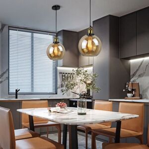 Wottes - 2-pack Industrial Pendant Light Glass Metal Hanging Ceiling Lamp Shade Adjustable Height Chandelier Amber Ø20cm