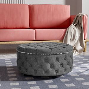 Lounge back on this ottoman or put your feet up in style - it is a glamorous and versatile addition to the home! Available in a range of colors to suit your existing décor, the ottoman features studded details, button stitching, and a linen blend upholstery for plenty of luxe appeal. It is made clear for easy upkeep over the years. Etta Avenue Upholstery Colour: Dark Grey