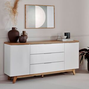Light, stable and durable design - Scandi style! Our sideboard has exactly that certain something that your home needs. Floating design with light wooden feet, extra thick, rounded top, and fronts, and lots of storage space. Because behind the door and in the 3 drawers you will find a lot of storage space. And the best thing is: even if your TV set can be comfortably placed on the sideboard and behind the door, you can store your equipment - thanks to the cable entry! George Oliver