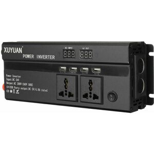 Feature: - The inverter can convert DC12/24V to AC 110V/220V. - Intelligent digital display: real-time monitoring of input voltage and output voltage. - Built-in low noise cooling fan. - USB output charging interface available. - Positive and negative pole terminal. - Comes with a pair of battery cable, convenient to use. - Manual inverter switch. - 12V is usually for cars, 24V for trucks. - Perfect for using TV, DVD player and other devices household items in your car with our power inverter. - A necessity for your road trips, vacations, outdoor activities, emergency kit and more. Specification: - Color: Black - Material: Aluminum Alloy - Socket Style: Universal Socket - Rated Power: 1200W - Peak Power: 5000W - Input voltage: 12 V/24V - Output voltage: 100-130V 60Hz/200-240V 50Hz -USB output: DC5V 4.8A -Output waveform: wave Modified Sine Wave Package Included: 1x Inverter 1 Pair Battery Cable 1x Cigarette Lighter Cable 1x User Manual Note:< br/>1. Please allow 0.5-1cm differences