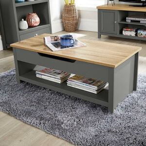Stylish yet extremely functional, this lift up coffee table is a clever and modern addition to any living space. Ideal for compact areas, rooms that require storage space or just for people who like to eat their dinner on the sofa, the table is extremely versatile. Simply lift the lid to reveal the secret storage compartment underneath, providing a generous amount of room to help keep your home tidy. Featured in a stunning graphite or grey finish with a Sonoma oak top, this table will suit a range of contemporary homes. There is also a shelf for further storage where you can keep essentials close to hand. Available in Graphite & Grey