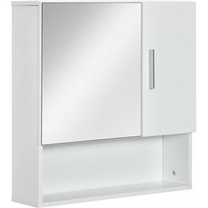 This bathroom cabinet from kleankin brings in handy storage and a place to get ready at any time.Inside there is an adjustable shelf, meaning you can fix it to a position which fits your toiletries, bottles, medicines and more. Made from MDF, the structure is durable and can be used every day, with its wall-mountable design making it ideal for places with no floor space to spare. It's finished with handles on the doors to open and close easily. Specifications: • Color: White, Wood Grain Top • Material: MDF • Overall Dimension: 56W x 14D x 46Hcm • Single Door Size: 25W x 42Dcm • Inner Shelf Size: 50.5W x 9.8D x 20Hcm, 50.5W x 9.8D x 21.5Hcm • Weight Capacity: 10kg (total), 4kg (shelf) Features: • White colour is fresh, with complementary wood-effect panels on top and bottom • Wall-mounted design, takes up little space • Double mirror door, plenty of reflective room to get ready • MDF structure is solid and durable • Easy-to-move adjustable shelf inside • Maximum load 10kg, assembly