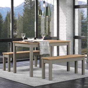 See the below information for this Grey Corona Linea table + 2 bench Set, 1 x CRGTB5 + 2 x CRG108 (Pair): Table A practical solid wood dining table in contemporary plank top design with grey waxed finish under frame with antique waxed top surface. Solid pine Grey wash wax frame with antique wax top Steel assembly bolts for strength and stability Wood corner blocks for added stability Plank effect tops Material: Pine Dimension: L75 x W120 x H75 cm Weight: 18.5 kg Bench A practical wooden bench in contemporary design with grey waxed finish under frame with antique waxed pine seat. Solid pine Grey wash wax frame with antique wax seat Steel assembly bolts for strength and stability Allen key assembly fitting supplied Wood corner blocks for added stability Material: Pine Dimension: L30 x W105 x H45 cm Weight: 8 kg . Grey Corona Linea table + 2 bench Set, 1xCRGTB5 + 2xCRG108 . Delivery is free to UK Mainland excluding the following postcodes which will incur a surchage, please check before
