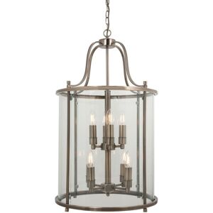 The Large Hakka Antique Brass 8 Light Round Hanging Lantern is a Large Hanging Ceiling Light ideal for use in Hallways and Stairwells, and has 2 levels of candle lamps which will provide a bright but welcoming light and is compatible with LED lamps, this light will add the finishing touch to you home. KEY FEATURES * 2 tiers of light * Elegant Styling * Antique Brass Finish * Frame Height 730mm * Height with Chain - 1350mm * Chain can be added to increase drop to 2.5m without rewiring, Extra chain available to order * Width 430mm * Weight - 9.2kg net * Takes 8 x 40 watt max SES Candle bulbs(not included)