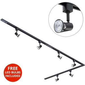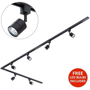 Maximise your lighting potential with this 3M L Shape Track Light, equipped with 6 Greenwich fixtures and LED bulbs in an elegant black finish. The L-shaped configuration is ideal for corner spaces, providing ample light coverage while adding a contemporary touch. This track light system is designed to deliver energy-efficient lighting with a sleek, modern appeal. Kit includes: 6x heads, 6x LED Bulbs, 3x 1 metre track, 2x butt connectors Perfect solution for kitchens, dining rooms, hallways and office space Customise the position and number of spot heads for practical, directional lighting The spotlight heads are compatible with LED or halogen bulbs (GU10) Create Straight or L-Shaped variations to suit your room using the connectors Product Type: Track Light Spot Head Colours: Black Light Bulb Type: GU10 Bulbs Required: 6 (Included) Bulb Wattage: 8 Watt Light Source: LED Length: 2 Metre Width: 3.3 cm approx. Material: Metal Technical Information *For bulb colour temperature details,