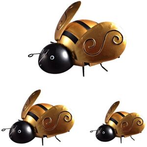 MATERIAL: The bees are made of high quality metal, sturdy and rust-resistant, which can withstand outdoor use 3D APPEARANCE: Each bee is hand-painted with vibrant colors, the appearance of a bumblebee adds a touch of freshness and whimsy to your decoration INDOOR & OUTDOOR DECORATION: The bee wall art is perfect for nature-themed party, restaurant, bathroom, bedroom, living room, garden fence, patio, porch, entryway EASY TO HANG: Apply a nail or hook and hang it through the hole, easy to mount on a wall or fence Color: Black + Gold Material: Metal Package Contents: 3 x Bee Wall Sculptures Only the package Above, other products are not included. Note: Light reflection and different displays may cause the color of the item in a little different from the real thing. The measurement allowed error is +/- 1-3 cm.