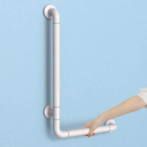 Premium Material - The inner tube bathtub grab bar for seniors is made of high quality SUS304 stainless steel with white nylon surface, durable and corrosion-resistant, non-slip and antibacterial, can be used for a long time. Shower Grab Bar - Length: 35cm - Height: 60cm - Diameter: 3.5cm. Safe and Fluorescent - The bathroom wall grab bar with a maximum load of 200kg. 90° angle non-slip shower grab bar that gives you a firm grip when showering. The 4 fluorescent rings glow at night to prevent the elderly, disabled or children from slipping in the dark. Multifunctional Use - The bathroom shower grab bar not only provides a secure grip and brings safety and comfort to your family, but also a towel rack to hang your towel, bathrobe or clothes. The design of the wall-mounted bathtub handle takes up little space on the wall, saving space. Easy Installation - The toilet grab bar can be installed at any angle, whether left or right, and can be installed in just a few steps. The bathtub