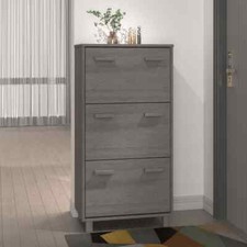 Introduce an air of unique charm to your existing interior with this wooden shoe cabinet! Solid pine wood: Solid pine wood is a beautiful natural material. Treat the surface with oil, wax, lacquer, or a glazing finish for a stronger surface and easy cleaning. Pine wood has a straight grain, and the knots give the material its signature, rustic look. Sturdy and stable frame: The wooden frame of the shoe rack ensures sturdiness and stability. Clutter-free design: The shoe storage cabinet has three shelves behind doors, providing ample space for shoe storage and keeping shoes dust-free. With this handy shoe organiser, you will no longer be annoyed by shoes cluttering your floor. Warning: In order to prevent overturning, this product must be used with the wall attachment device provided. Colour: White Material: Solid pinewood, MDF Dimensions: 85 x 40 x 108 cm (W x D x H) Shelf dimensions (each): 81 x 37 x 23.5 cm (W x D x H) Features wooden handles Range: "HAMAR" Assembly required: Yes