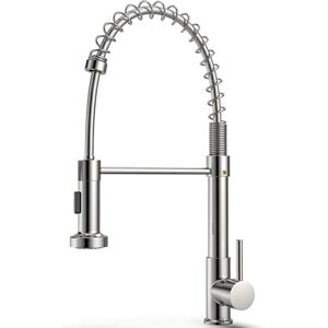 Unique design: this kitchen faucet spring has a beautiful and elegant look that suits any room. any kitchen decoration. With pull-out kitchen faucets, you can easily reach every corner of the sink and pour pots and pans directly into the cooking area. Cook your own meals and take responsibility for your health. of your family. Dual-mode spray: Our product has two different spray modes: column spray and shower spray. The button on the nozzle allows you to adjust the water jet cleaning, making it easier to clean fruits and vegetables and sinks. Flexible operation: the rotating nozzle with 360 degrees strong bend, can fully touch the water tank and spray downwards to avoid splashing. In addition, the design is at the same time A single handle makes it easier for hot and cold water to flow. flow control. High quality: Made of high quality copper alloy, equipped with a ceramic coil and a thickened cast iron body, high durability. higher, resistant to high temperature, pressure, leakage,