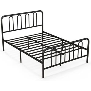 Upgrade your bedroom with style and functionality with this metal slatted platform bed! Constructed with a robust metal frame, this bed frame promises durability and a stable foundation that can support your mattress without the need for a box spring. Together with middle support legs, higher stability is ensured. Elegant headboard and footboard are designed in arc shape to enhance aesthetic appeal. Additionally, the space beneath the bed offers generous under-bed storage, keeping your space tidy and well-organized. The heavy-duty metal platform bed is easy to assemble due to its buckle design. Features: Graceful arc headboard and footboard for perfect visual effect Powder-coated metal slats ensure strong weight capacity 5 middle support legs enhance overall stability The metal beam features noise-free foam for a quiet sleeping night Sufficient under-bed space is easy to store items and clean the room Equipped with non-slip foot pads to prevent scratches Round corners prevent