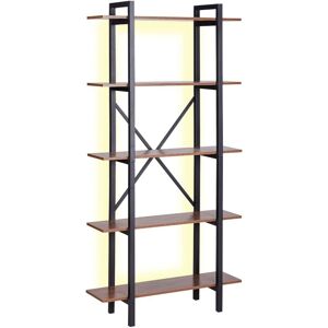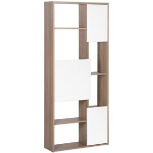 Scandinavian Dark Wood Open Bookshelf. Designed with multiple shelving spaces this tall bookcase is ideal for showing off your book collection, framed pictures or decorative accents. Its functional structure is constructed with 10 compartments. The shelf features an open back allowing you to use it as a room divider. Place it in your living area, home office or kitchen pantry, as its minimalistic design and basic colour scheme suits any interior style. Details: Product Type: Bookshelf Style: Scandinavian General Color: Brown, White Shade: Dark Brown Material Type: Engineered Wood Main Material: MDF Additional Material: Chipboard Shelves number: 5 Finish: Paper Veneer Dimensions: Depth: 23 cm Width: 83 cm Height: 174 cm Weight: 27 kg Shelf Weight Capacity: 5 kg Top Weight Capacity: 15 kg Offer Includes: 1 x Bookcase Key Features: Modern Design, High-Quality Materials, Solid Craftship, Ample Space for Storage, Uncomplicated and Self-Sufficient Assembly Assembly Information: Full