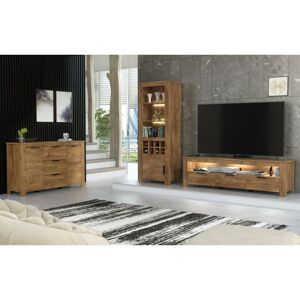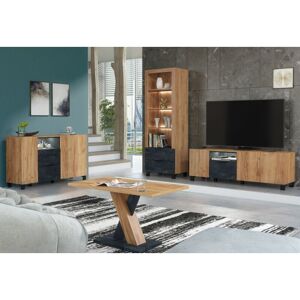 Add a modern touch to your living space with this stylish display cabinet. The oak and black concrete effect finish creates a contemporary yet warm look that complements any home decor. The item features an open area with three shelves and two drawers below for extra storage. Dimensions: (WxHxD): 60x178x40cm White LED lights are included, they are mains powered with a UK power adapter and foot switch to turn them on and off. Note that this is a flatpack item and will require assembly. Picture instructions, and a written notice are included with the item, these should be looked over carefully, before attempting assembly.
