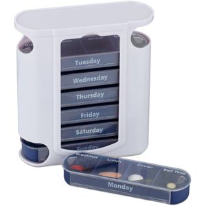 Keep your daily medication under control with these practical dosette boxes. The pill organisers have 31 green and blue compartments. The labels with dates reduce the risk of mixing up medication. Each tablet holder has a lid with secure closure and can be easily opened by older people. This means you can also use the pillbox on the go or when travelling. Please note: Cleaning agents and high temperatures may negatively affect the labels. Please wash by hand. Monthly Pill Box Details - Measurements H x W x D: approx. 3.5 x 28.5 x 10 cm (1.4 x 11.2 x 3.9 in.) - Size per compartment: H x W x D: approx. 2.5 x 2.5 x 1.5 cm (1 x 1 x 0.6 in.) - Weight: approx. 200 g each - Material: PP Plastic (BPA-free) - Colour: White, green, blue Set of 2 Boxes for Daily Medication Storage - Medication box for 31 days, each with 1 compartment per day - Colourful compartments with labels - For an overview of daily medication - The easy to open lid is perfect for older people - Lightweight pill boxes for