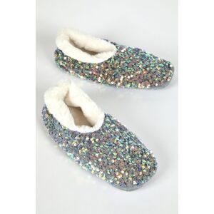 Sequin Faux Fur Lofty Slippers by Roman UK Size Up for a Relaxed Fit Be the star of the night with our shimmer sequin finish lined with our premium faux fur to keep your toes warm and snug this cosy style features a textured sole for easy loungewear Ideal as a gift or for yourself pair with our soft robes or add some sparkle to your casual weekend look Womens Regular fit True to size Upper Textile Lining and sock Textile Sole Textile and Other Materials Upper Textile