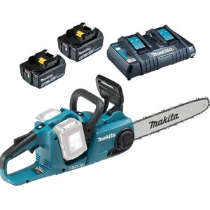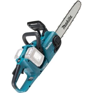 The new Makita DUC353 twin 18v battery powered brushless chainsaw sets new standards for cordless chainsaws and matches the logging performance of similar size petrol powered saws. At the same time this new saw offers the many values of cordless machines which have become recognised throughout the industry: zero emissions; super-quiet operation; total control and high levels of efficiency and safety as standard. In addition to the drive brake safety systems the main power system is automatically turned off if the operator does not grip the lock-off lever 10 seconds after the machine is switched on. The same happens if the operator does not squeeze the trigger switch within one minute after switch-on. The Makita DUC353 36v back-handle chainsaw is super-safe in experienced hands and delivers professional performance time after time. Specifications • Battery Voltage: 36v (2x 18v batteries) • Battery Type: LXT Li-ion • Chain Oil Capacity: 200ml (cm³) • Chain Gauge: 0.043" • Chain Pitch: 3/8" • Chain Speed: 0-20m/sec • Bar Size: 350mm • Noise sound pressure/power: 87.7/100.4dB(A) • Noise K factor: 2dB(A) • Vibration K factor: 1.5m/sec² • Vibration (cutting wood): 5.3m/sec² • Net weight: 4.6-5.5kg Features & Benefits • Brushless motor • Variable speed control • Constant speed control • New adjustment lever • Electric chain brake • Kickback brake • Oil Capacity Display • Ergonomic soft grip • Large separate-type metal spike bumper • Adjustable automatic chain lubrication • Lock-off lever • Main power switch with auto power-off function Contents • DUC353PT2 36v Cordless Chainsaw • Chain • Guide Bar • Guide Bar Cover • 18v LXT 5.0ah Li-ion Batteries (x2) • Dual Port Battery Charger