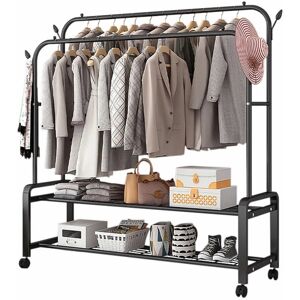 Multifunctional Design: This versatile storage rod serves as a professional organizer, helping you keep daily items neatly arranged and accessible. Sturdy Construction: Crafted from high-quality carbon steel with reinforced, thickened steel tubing, this clothes rack offers exceptional durability and reliable support for your garments. Ample Storage Space: The double clothes rail provides generous capacity, while the lower shoe rack offers additional storage for shoes, boots, and boxes, keeping everything organized in one place. Adaptable for Any Space: Perfect for any room in your home—whether the balcony, hallway, laundry room, living room, bedroom, or kids' room—without taking up too much space. Easy Assembly: Designed for quick and easy assembly, this portable clothes rack offers a rugged, versatile solution for all your storage needs. Bloomsbury Market